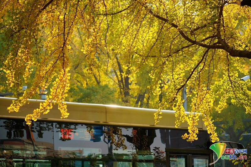 Photo taken on Dongzhimen Outer Street in Beijing on October 24th. Every year, during several weeks in autumn season, ginkgo leaves on one side of the street turn yellow, while buttonwood leaves on the other side of the street stay green. Netizen commented that the two sides of the street share the beauty of autumn. Tourists and citizens loves to take photos there to record the “half green, half yellow” landscape. Photo/VCG