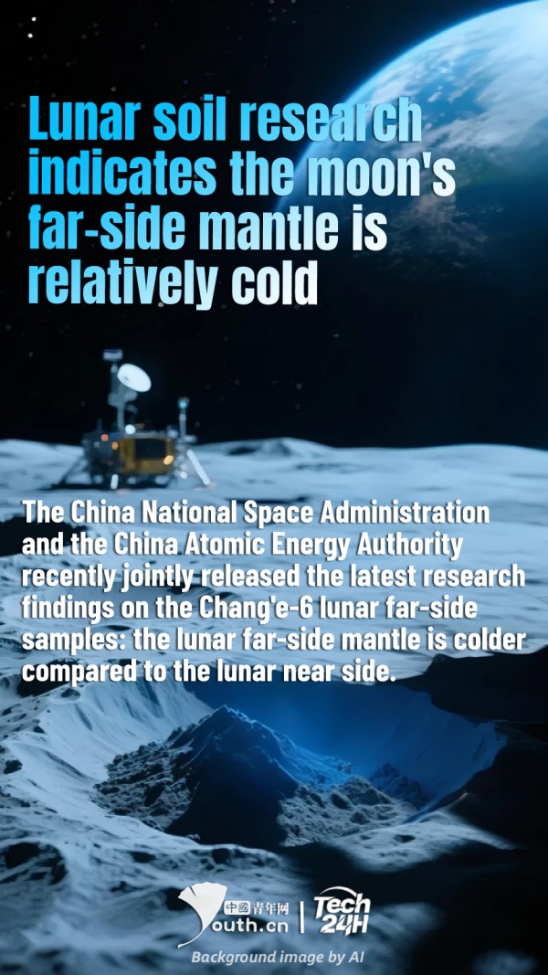 【Tech 24H】The China National Space Administration and the China Atomic Energy Authority recently jointly released the latest research findings on the Chang'e-6 lunar far-side samples: the lunar far-side mantle is colder compared to the lunar near side.