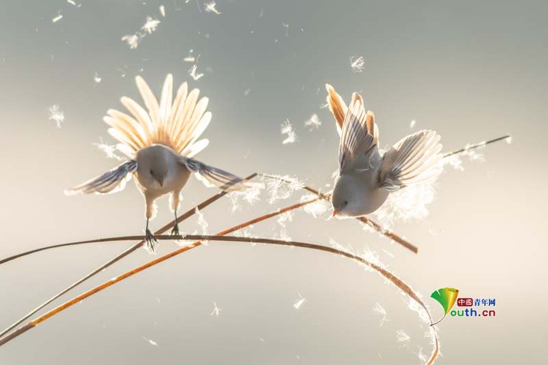 Beijing, October 13 (Youth.cn) - On October 10, 2025, in the Longfeng Wetland Nature Reserve in Daqing City, Heilongjiang Province, bearded reedlings were spotted foraging among the reed beds. Photo/CFP
