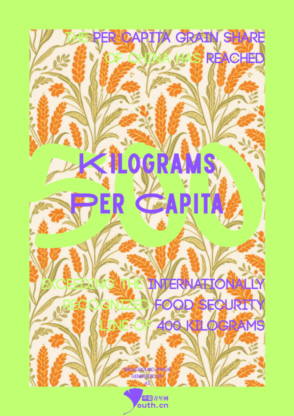 Since the launch of the 14th Five-Year Plan, China has deeply implemented the national food security strategy, strengthened the capacity to store grain in the land and in technology, and consolidated the foundation of food security in all aspects. The per capita grain share has reached 500 kilograms, exceeding the internationally recognized food security line of 400 kilograms. This ensures basic self-sufficiency in grains and absolute security in staple food.