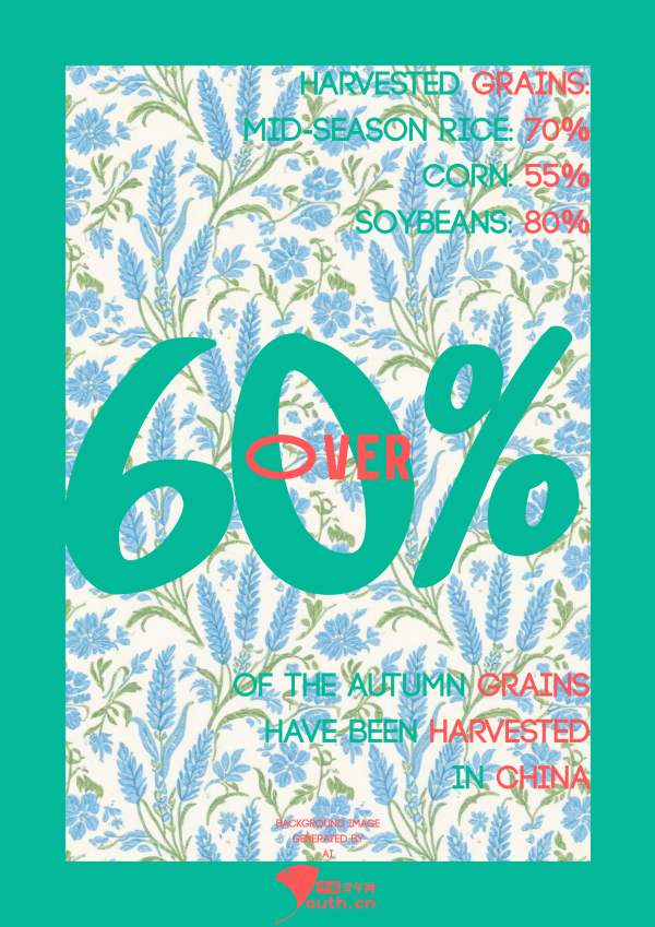 The latest agricultural situation survey from the Ministry of Agriculture and Rural Affairs shows that over 60% of the national autumn grain harvest has been completed. By crop, nearly 70% of mid-season rice, 55% of corn, and nearly 80% of soybeans have been harvested.
