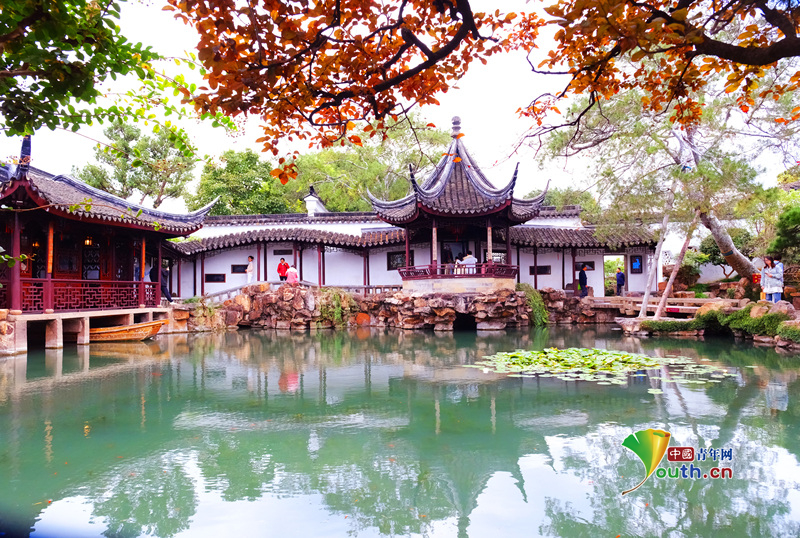 Beijing, October 21 (Youth.cn) - On October 20, in Suzhou, for days, a persistent cold air has brought a deeper sense of autumn for the Master-of-Nets Garden. The ancient trees, including purple-leaf plums and magnolias, are now adorned with a brilliant tapestry of colors. Together with the classical pavilions and tranquil ponds, they form a scene of picturesque beauty. Photo/CFP
