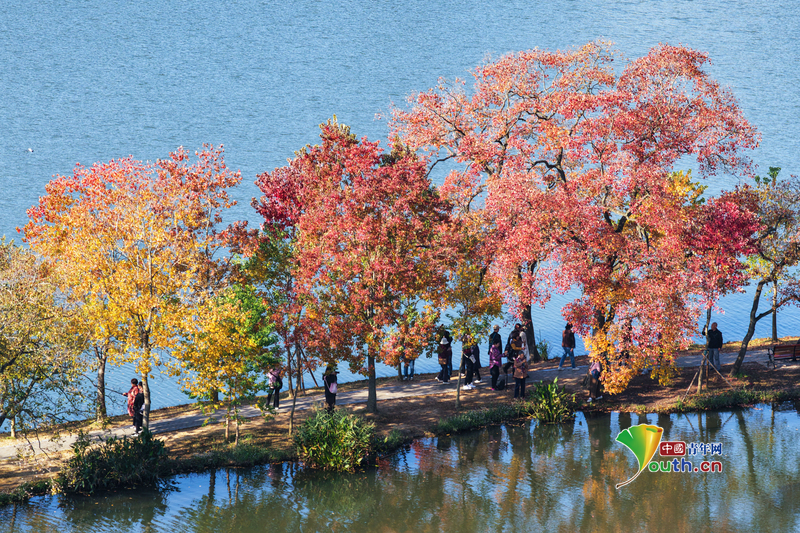 Beijing, November 5 (Youth.cn) - On November 5, 2025, in Nanjing, Jiangsu, the trees along the Crescent Embankment of Qian Lake in Zijin Mountain showcased a vibrant palette of colors, forming a beautiful autumn panorama. Photo/CFP