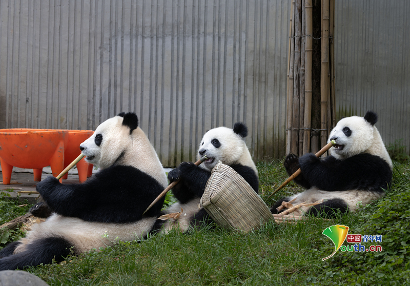 Beijing, November 7 (Youth.cn) - On November 6, 2025, at the Shenshuping Panda Base in Gengda Town, Wenchuan County, giant pandas enjoyed their food and played. Photo/CFP