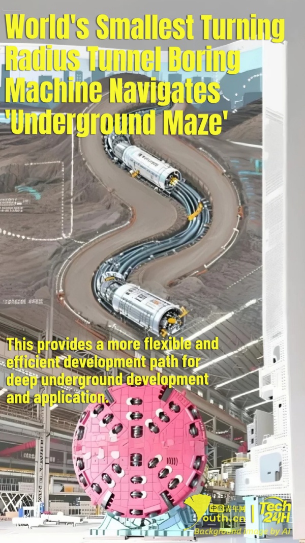 【#Tech24H】Recently, China achieved a major breakthrough in underground engineering equipment: the "Mozi" double-shield hard rock Tunnel Boring Machine (TBM), destined for the underground project of the Shandong Zaozhuang Shanting Pumped Storage Power Station, was launched in Changshu, Jiangsu. Independently developed by CCCC Tianghe Machinery Manufacturing Co., Ltd., the "Mozi" achieves a minimum turning radius of 50 meters, breaking the traditional TBM limitation of a 100-meter turning radius and pushing the technical limits of 6-meter-class underground boring equipment. This provides a more flexible and efficient development path for deep underground development and application.
