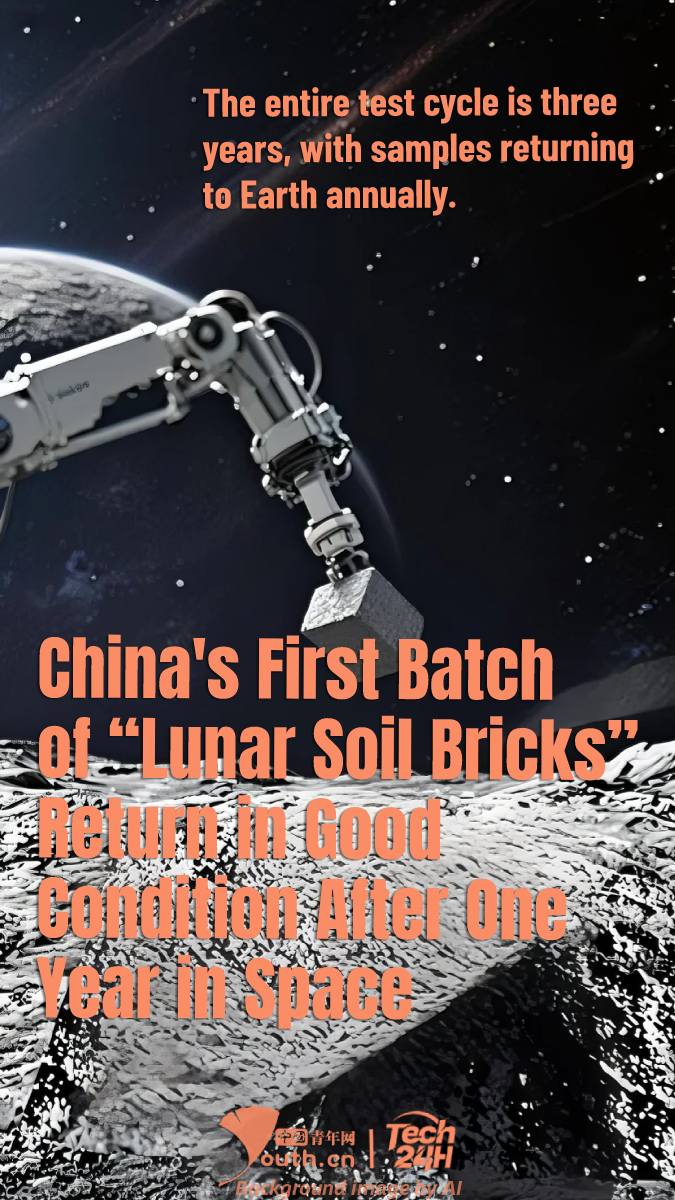 【#Tech24H】After a year of exposure outside the spacecraft, China's first batch of “lunar soil bricks” developed by a research team recently returned to Earth aboard the Shenzhou XXI spacecraft. The sample unit numbered R5, which completed the exposure experiment, was confirmed to be in good condition after expert inspection. The first batch of “lunar soil bricks” was sent to the Chinese space station via the Tianzhou 8 cargo spacecraft on November 15, 2024, for testing in the space environment. The “lunar soil bricks” were placed in an external exposure platform on the station’s exterior, with the total weight of the bricks and the exposure experimental facility being about 1,000 grams, divided into 74 small pieces, each weighing just over 10 grams. The entire test cycle is three years, with samples returning to Earth annually.