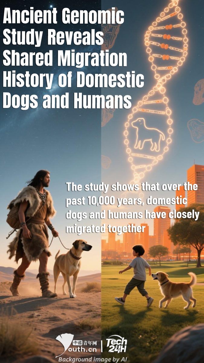 【#Tech24H】A team led by the Kunming Institute of Zoology of the Chinese Academy of Sciences, in collaboration with 35 international research groups, recently completed the genome sequencing of 17 ancient domestic dogs. Integrating previously published ancient genomic data, the team obtained 73 ancient dog genomes, constructing an evolutionary map of domestic dog lineages from East Asia to the Eurasian steppe. This reveals the shared migration history of domestic dogs and humans. The study shows that over the past 10,000 years, domestic dogs and humans have closely migrated together, with different populations in different periods carrying their own dogs across continents via routes such as the Eurasian steppe and the ancient Silk Road. This not only indicates an exceptionally close relationship between dogs and humans but also reflects the interconnectedness of ancient civilizations.
