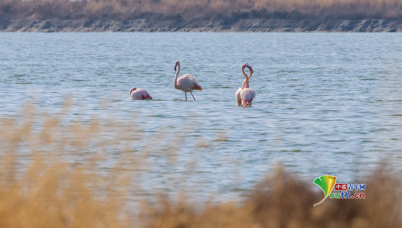 Beijing, November 20 (Youth.cn) - On November 19, 2025, Yuncheng City, Shanxi Province. Flamingos have arrived at the Salt Lake wetlands to inhabit and overwinter. They are either foraging or dancing in the air, becoming a beautiful winter spectacle at the Salt Lake. Photo/CFP