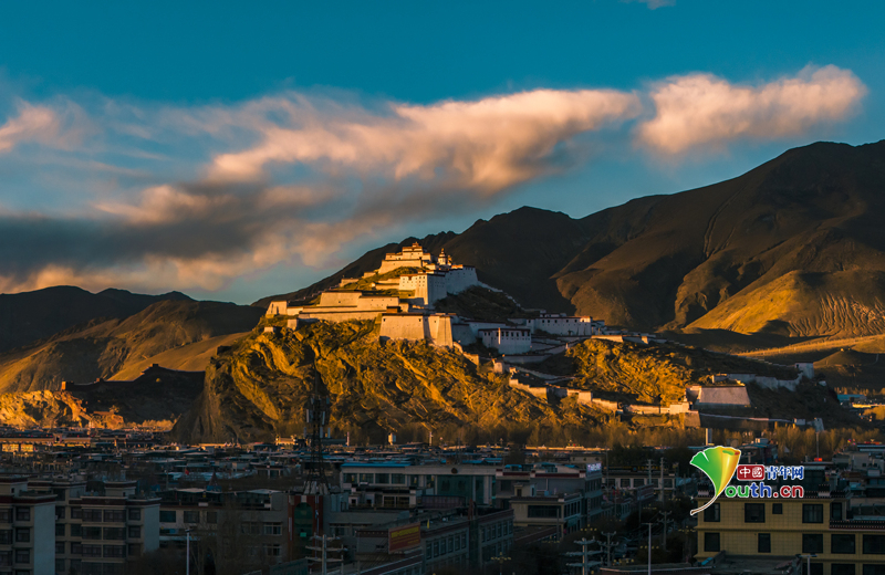 Beijing, November 20 (Youth.cn) - On November 18, 2025, in Gyangtse, Xigaze, Xizang Autonomous Region, a beam of sunset light illuminated the Zongshan Castle in Gyangze County, creating the amazing light shadow. Photo/CFP
