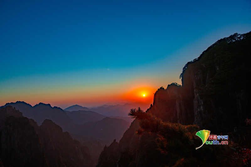 Beijing, November 20 (Youth.cn) - On November 15, 2025, the winter sunrise at Danxia Peak of Huangshan Mountain in Anhui created a visual spectacle of endless undulating ridges. Photo/CFP