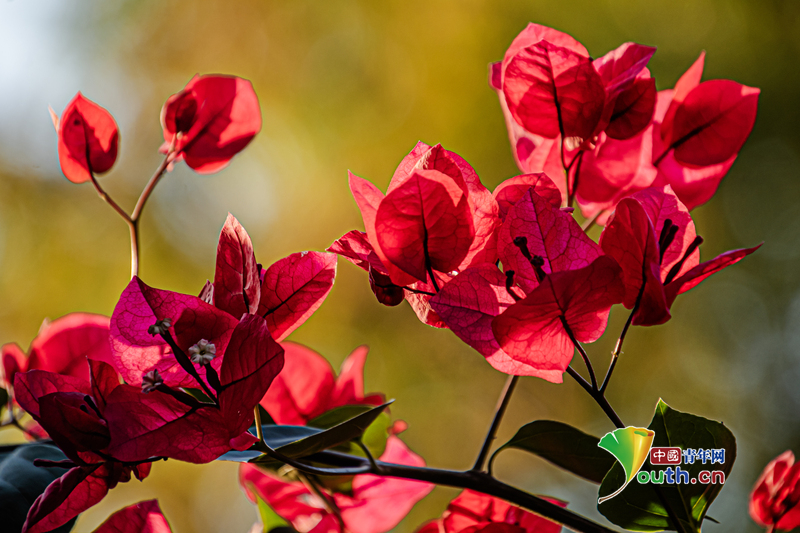 Beijing, November 28 (Youth.cn) - On November 24, 2025, in Ganzhou City, Jiangxi Province, a sunny day graced Mikeng Village with bougainvilleas in full bloom. Their magenta flowers blanketed the branches, and under the glow of the setting sun, the blossoms appeared strikingly vibrant and luxuriant, creating a dazzling and enchanting winter scene. Photo/CFP