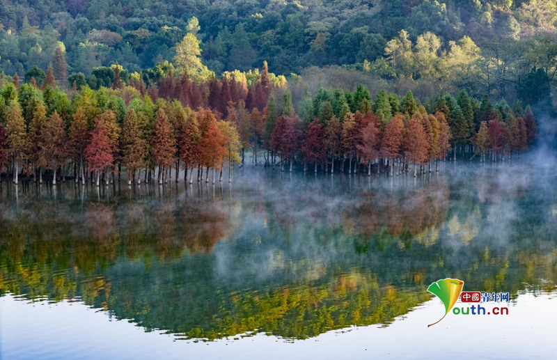 Beijing, December 1 (Youth.cn) - On November 30, 2025, in Xinyu City, Jiangxi Province, the pond cypress forests around Xiannv Lake gradually turned red. On a winter morning, the lake was enveloped in a thin mist, reflecting the cypress trees and creating a breathtaking view. Photo/CFP