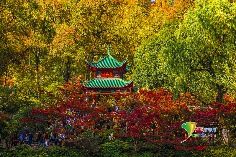 Beijing, December 1 (Youth.cn) - On November 27, 2025, in Changsha City, Hunan Province, the maple leaves at Aiwan Pavilion in the Yuelu Mountain scenic spot entered their optimal viewing season. The vibrant foliage complemented the pavilion perfectly. Photo/CFP