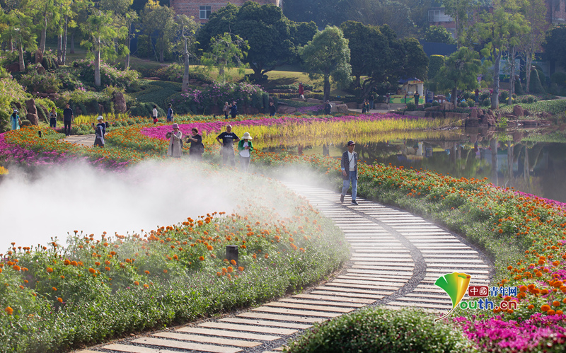 Beijing, December 1 (Youth.cn) - On November 23, 2025, the 10th Qingxiu Mountain Chrysanthemum Exhibition at the Qingxiu Mountain Scenic Area in Nanning attracted numerous visitors with its dazzling and colorful sea of flowers. Photo/CFP