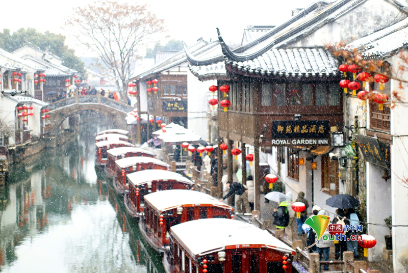 Beijing, January 21 (Youth.cn) - On January 20, 2026, Suzhou, Jiangsu Province, welcomed the snowfall. The snowy scenery along the ancient Shantang Street, known for its characteristic Jiangnan water town style, offered a unique charm and attracted many tourists to take photos. Photo/CFP
