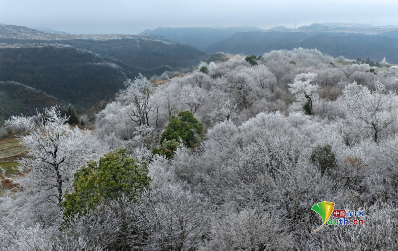 Beijing, January 23 (Youth.cn) - On January 21, 2026, Guiyang City experienced the strongest cold wave of the winter, with temperatures plummeting below zero. A rare rime spectacle appeared in the suburban Huaxi District, transforming the area into a fairy-tale world. Photo/CFP