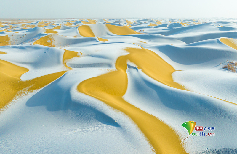Beijing, January 30 (Youth.cn) - On January 29, 2026, snowfall graced the edge of the Taklamakan Desert in Bayingolin Mongolian Autonomous Prefecture, Xinjiang. The vast desert, draped in pristine white snow, presented a breathtakingly beautiful and majestic scene. Photo/CFP
