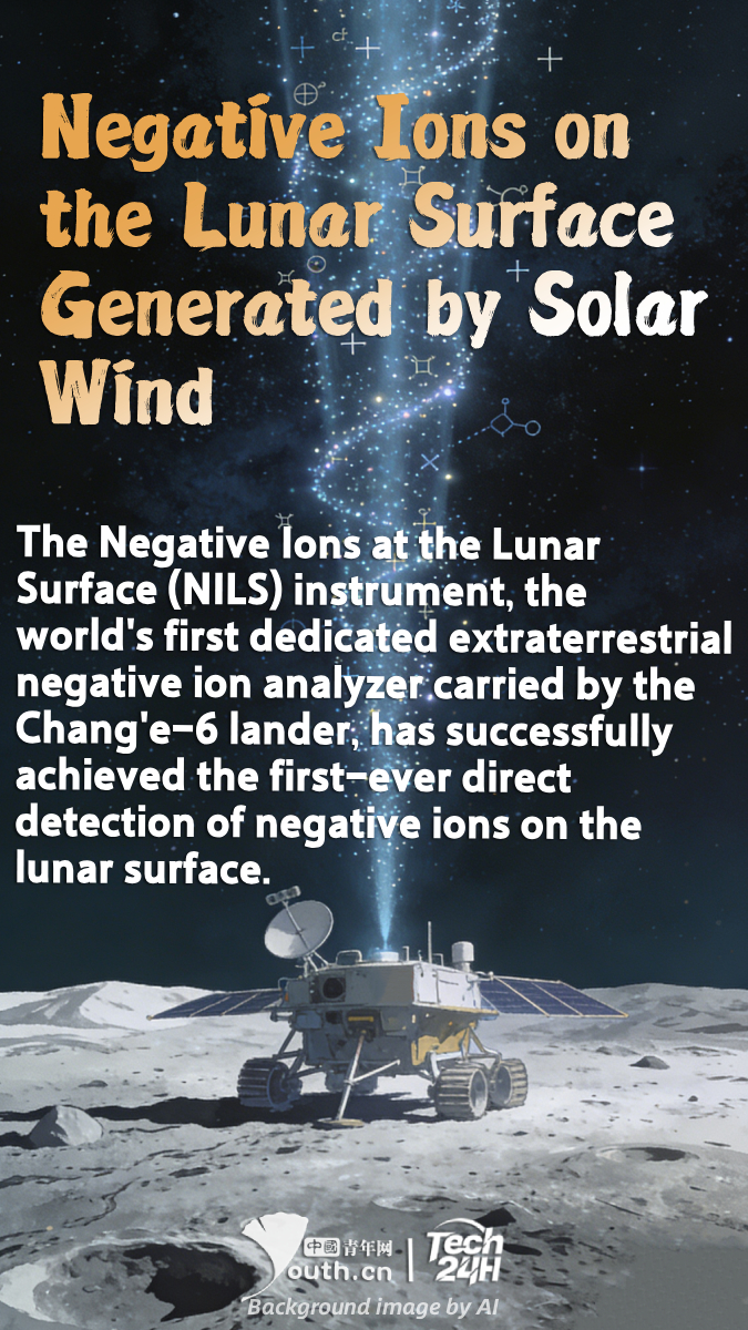 【#Tech24H】The Negative Ions at the Lunar Surface (NILS) instrument, the world’s first dedicated extraterrestrial negative ion analyzer carried by the Chang’e-6 lander, has successfully achieved the first-ever direct detection of negative ions on the lunar surface. This reveals the presence of negative ions generated by the solar wind on the Moon, solving a long-standing mystery in the scientific community. In lunar orbit, the lifespan of hydrogen negative ions is only about 0.07 seconds, a signal that previous lunar orbiting missions had consistently failed to capture. By landing on the lunar surface, Chang’e-6 was able to conduct direct detection near the source of these ions, breaking through this bottleneck. This research not only enhances our understanding of the lunar plasma environment but also provides new perspectives for studying space weathering on the lunar surface and the lunar exosphere.