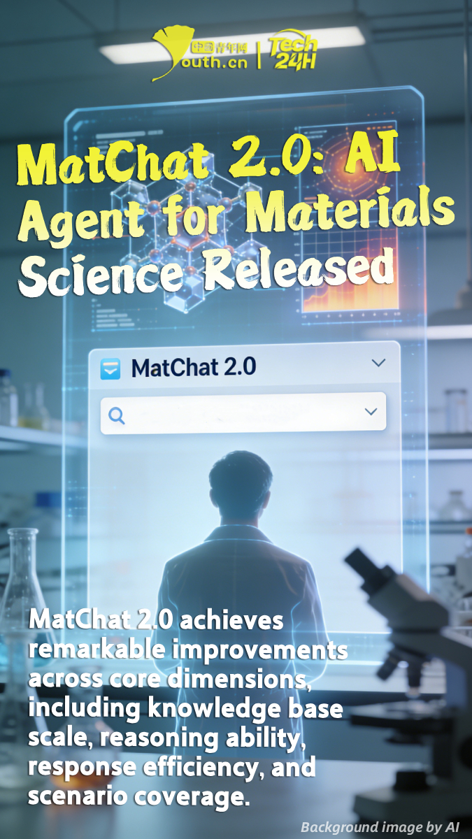 【#Tech24H】MatChat 2.0, the significantly upgraded version of China’s first AI agent dedicated to the field of materials science, has been officially launched. MatChat 2.0 achieves remarkable improvements across core dimensions, including knowledge base scale, reasoning ability, response efficiency, and scenario coverage. It provides researchers with a novel method for literature retrieval and knowledge acquisition. MatChat 2.0 is built upon a foundation of over 800,000 meticulously selected academic papers, covering all branches of materials science. The content within this vast knowledge base is sourced from authoritative academic journals and conference proceedings, undergoing strict selection and quality control to ensure the reliability and cutting-edge nature of the information.