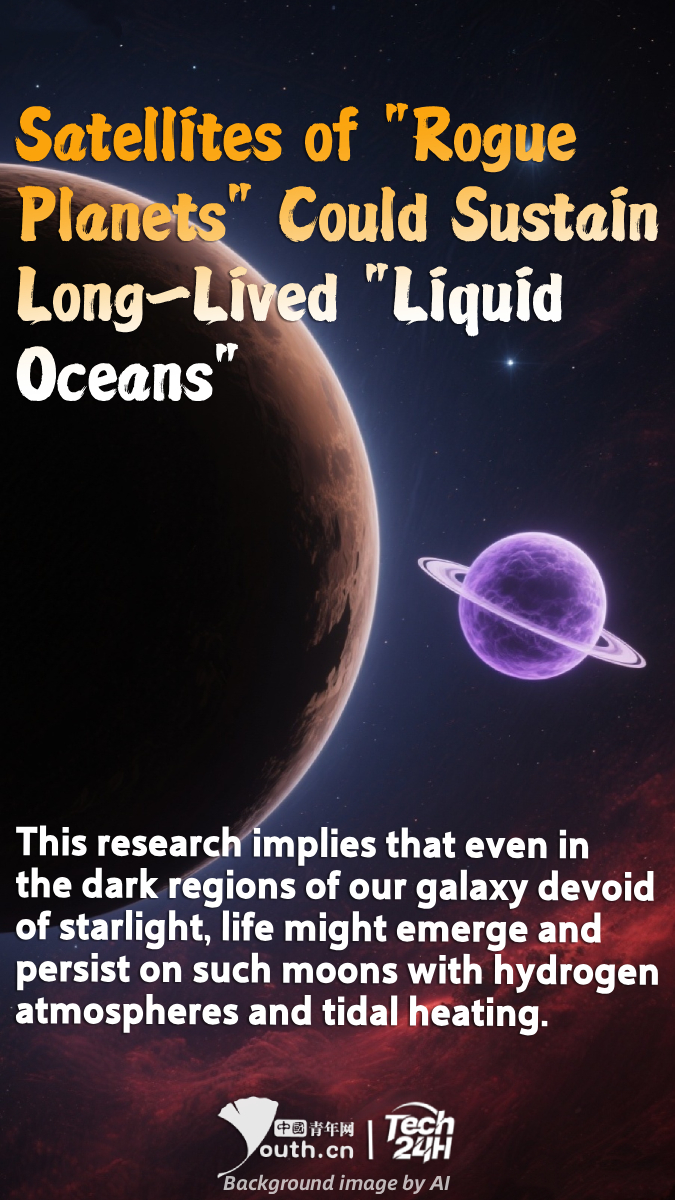 【#Tech24H】Research jointly conducted by the ORIGINS Excellence Cluster at LMU Munich and the Max Planck Institute for Extraterrestrial Physics suggests that moons orbiting free-floating “rogue planets” could maintain stable liquid oceans on their surfaces for up to 4.3 billion years if they possess a thick hydrogen-rich atmosphere. This timescale is nearly comparable to Earth’s age, potentially sufficient for complex life to evolve. Estimates indicate that the number of free-floating planets in the Milky Way may rival the number of stars. This research implies that even in the dark regions of our galaxy devoid of starlight, life might emerge and persist on such moons with hydrogen atmospheres and tidal heating. Searching for these habitable worlds could become a crucial new direction in the future detection of extraterrestrial life.