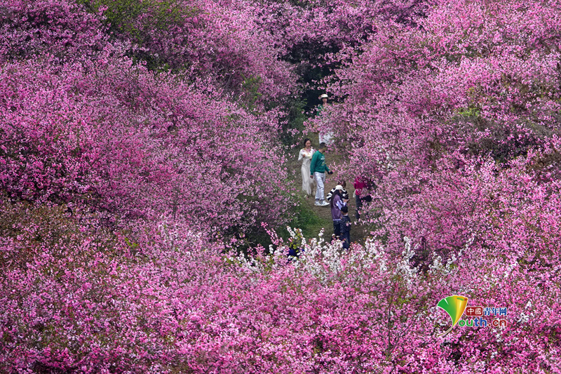 Beijing, March 24 (Youth.cn) - On March 23, 2026, in Qingzhen, Guizhou Province, thousands of acres of crabapple flowers in the countryside were at their peak blooming period. Clusters of pink and white blossoms covered the branches, drawing numerous tourists. Photo/CFP