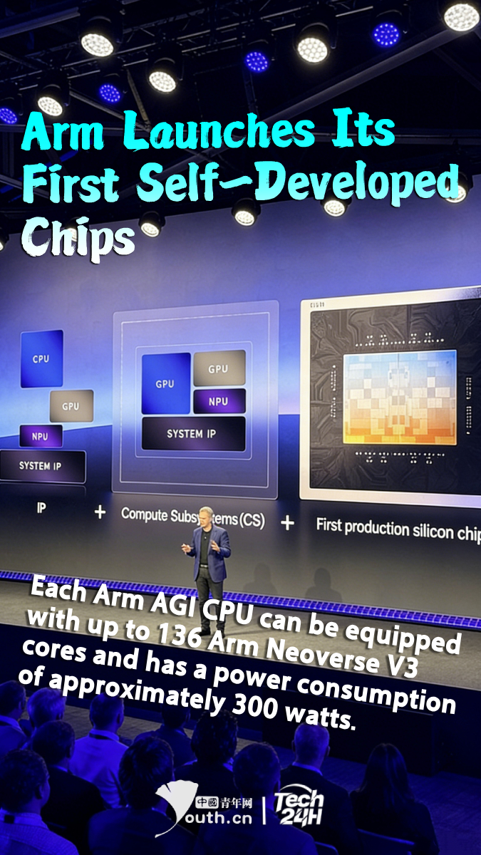 【#Tech24H】Arm has released its first mass-produced, self-developed chip products, the Arm AGI CPU, designed for AI data centers to meet the growing demands of agentic AI workloads. Each Arm AGI CPU can be equipped with up to 136 Arm Neoverse V3 cores and has a power consumption of approximately 300 watts. Arm claims it to be "the world's most efficient agentic CPU".