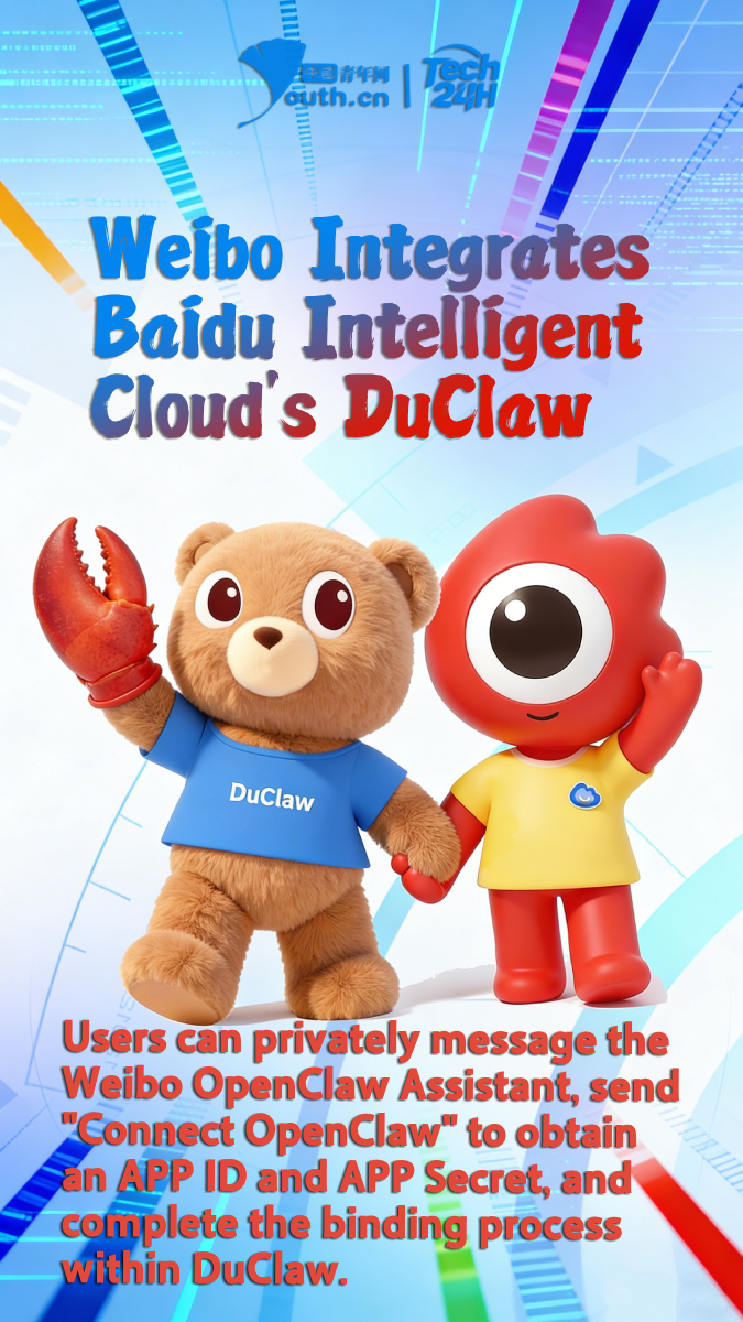 【#Tech24H】On March 25, Weibo officially integrated Baidu Intelligent Cloud's DuClaw. Users can privately message the Weibo OpenClaw Assistant, send "Connect OpenClaw" to obtain an APP ID and APP Secret, and complete the binding process within DuClaw. Once connected, users can invoke the assistant directly in the Weibo OpenClaw Assistant private message interface, allowing them to engage with OpenClaw features within the Weibo platform. By retrieving key metrics from their recent Weibo posts, users can continuously refine and optimize their content strategies.