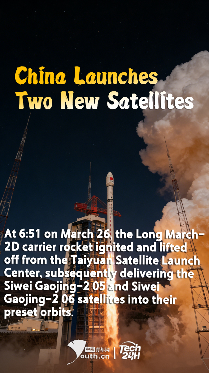 【#Tech24H】At 6:51 on March 26, the Long March-2D carrier rocket ignited and lifted off from the Taiyuan Satellite Launch Center, subsequently delivering the Siwei Gaojing-2 05 and Siwei Gaojing-2 06 satellites into their preset orbits. The launch mission was a complete success. After entering orbits, the satellites will form a coordinated "four-satellite, two-group" network with the already in-orbit Siwei Gaojing-2 03 and Siwei Gaojing-2 04 satellites. This will significantly enhance imaging capabilities, double data acquisition capacity, and halve the revisit period, enabling faster and denser global observation coverage. This effectively supports the establishment of a high-precision global geographic information framework and provides high-quality, efficient, stable, and accurate spatiotemporal information services for national economic development and the construction of a Digital China.