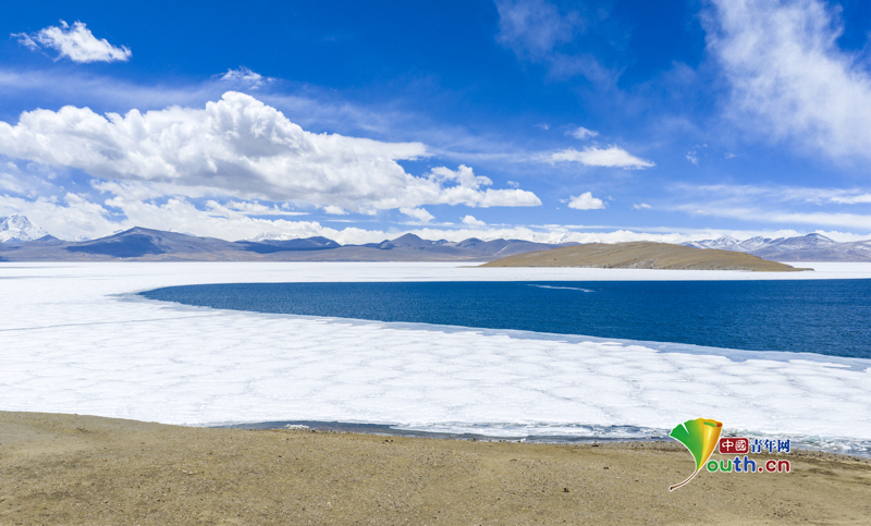 Beijing, April 8 (Youth.cn) - On April 6, 2026, in Shannan, Xizang Autonomous Region, the blue ice of the highaltitude glacial lake Puma Yumco started to thaw. As the ice and water melted, the landscape under the blue sky and white clouds was as picturesque as a painting. Photo/CFP