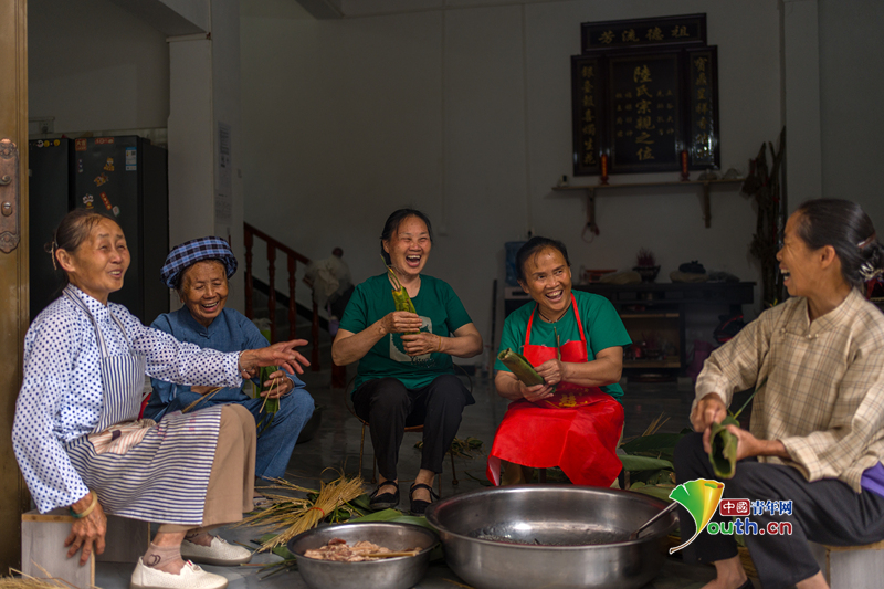 Beijing, April 17 (Youth.cn) - On April 16, 2025, in Wangmo, Guizhou, as the traditional March 3 Festival ("Sanyuesan" in Chinese) approached, villagers of Xintun Buyi Village busied themselves making Buyi pillow-shaped Zongba (sticky rice dumplings) to welcome their relatives home for reunion. Photo/CFP