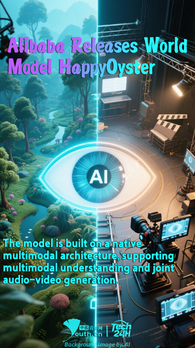 【#Tech24H】On April 16, Alibaba released its world model HappyOyster, further expanding its AI product matrix with a direct focus on content production fields such as gaming and filmmaking. The model is built on a native multimodal architecture, supporting multimodal understanding and joint audio-video generation. Currently, HappyOyster enables two core capabilities: Wander and Direct, allowing users to build interactive, performative, and explorable AI-driven digital worlds in real time. The digital worlds generated by users can not only be fully saved but also opened up for secondary creation by other users. Alibaba stated that the product is currently in a limited early experience phase.