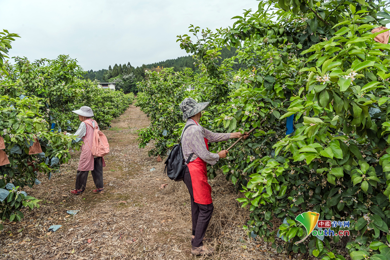 Beijing, April 17 (Youth.cn) - On April 16, 2026, in Ziyang, Sichuan, the local 480,000 mu of lemon trees entered full bloom. To ensure the healthy growth of young fruit, local growers organized workers to shake the flowers, preventing petals from sticking to young fruit and affecting growth or causing disease and drop. Photo/CFP