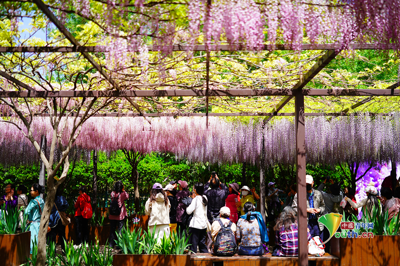 Beijing, April 22 (Youth.cn) - On April 21, 2026, in Beijing, the wisteria at Yuyuantan Park burst into full bloom. Clusters of blossoms hang down like a flowing waterfall, presenting a gentle and romantic springtime spectacle that is fleeting yet enchanting. Photo/CFP