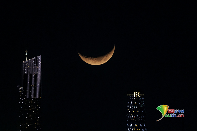 Beijing, April 22 (Youth.cn) - On the evening of April 21, 2026, the largest crescent moon of the year made its appearance in the sky. Photo/CFP