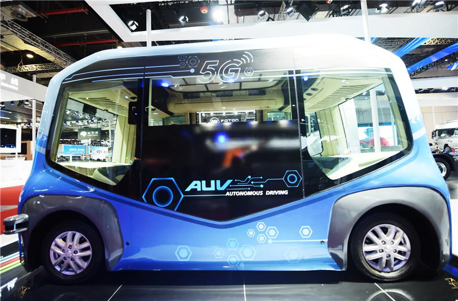 A domestic driverless mini bus equipped with 5G technology has been launched at the auto show. This type of bus is expected to be put into use during the Beijing 2022 Winter Olympic Games.