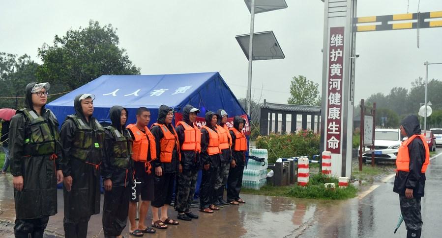 Flood-control workers prepare to patrol Danhe River in Chenzhuang Village, Motou Township, Bo'ai County of Jiaozuo, central China's Henan Province, July 20, 2021. (Xinhua/Li Jianan)