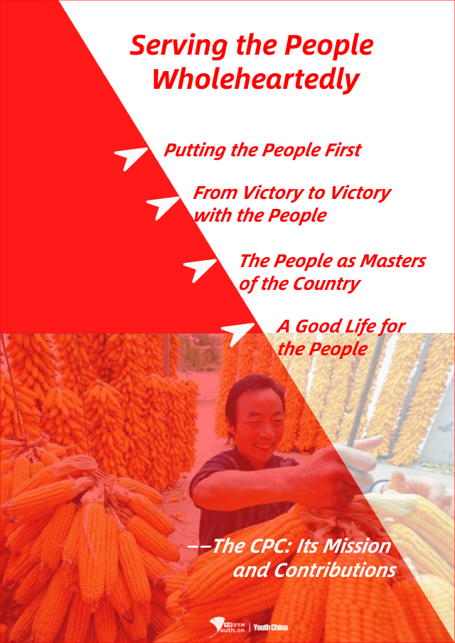 The CPC works in the service of the people. It trusts and relies on the people and mobilizes them to fight for their interests. It follows the mass line, a principle of "from the people, to the people". It has shared good times and hard times with the people, and it has led them in surmounting all obstacles and making great strides forward.