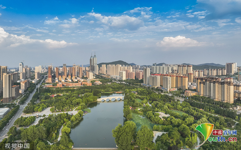 Beijing, July 17 (Youth.cn) -On July 16th, 2023, at Longtan Park in Xuecheng District, Zaozhuang City, Shandong Province, the blue sky, green trees, white clouds and city buildings constitute a natural landscape painting. In recent years, the local government has strengthened the governance of urban and rural living environment, promoted the construction of water environment, and continued to improve the urban and rural ecological environment.