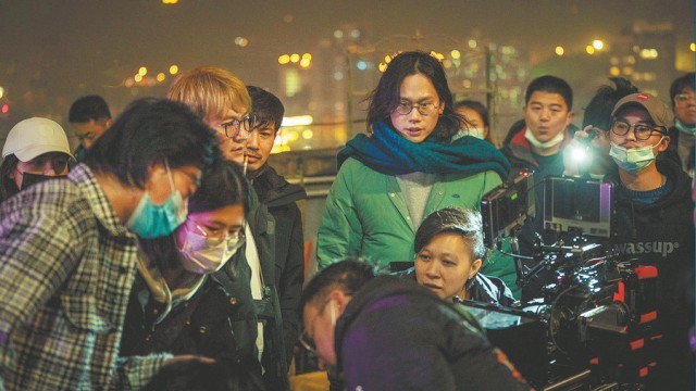 Director Derek Hui (center, standing) on location at I Am Nobody, which has realized his yearslong dream to produce a superhero tale set in modern China. CHINA DAILY