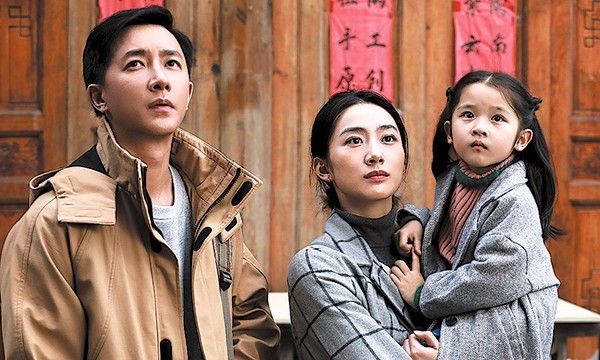 Han Geng as the son Liu Jiansan, with his wife and daughter, played by Xue Haojing and Xu Zhimo.[Photo provided to China Daily]