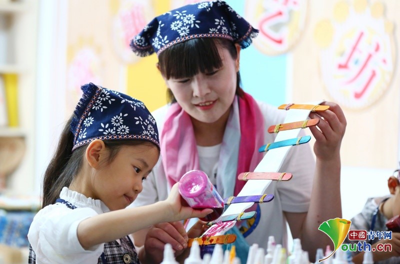 Beijing, May 31 (Youth.cn) - An art workshop was organized in Tengzhou, Shandong Province before International Children’s Day. With the guidance of art teachers, children learned traditional art skills. Tie-dye, straw plaint, embroidery and several intangible culture heritages brought children fun for art creation. Photo/VCG