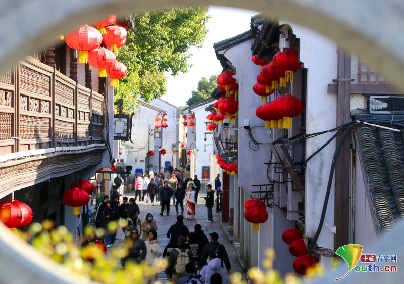 Beijing, January 10 (Youth.cn) - Photo taken in Shantang Street in Suzhou City on January 9th. Tourists were wandering around the street that decorated with hundreds of red lanterns. On upcoming Spring Festival, these lanterns beautify the historical street, creating festive atmosphere. Photo/VCG