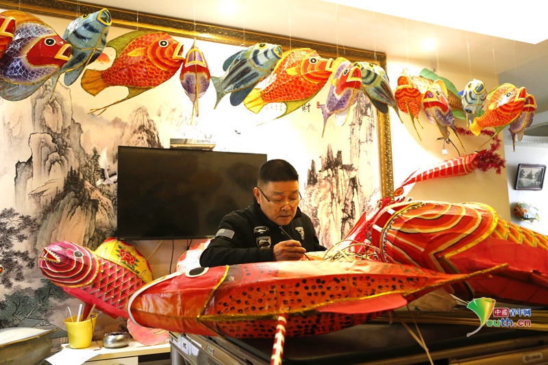 On January 8, 2025, Xu Zhen, the inheritor of the intangible cultural heritage craft of Zhejiang Province, Kanmen Ao'long Fish Latern Dance, is making fish lanterns of various shapes in his studio in Kanmen Community in Yuhuan City of Taizhou City, Zhejiang Province. He is the third inheritor of the craft in the family, after 40 years of crafting experience making lanterns with his father. With hundreds of years accumulated in it, the fish lantern has become the charm of safety and prosperity of the people in Yuhuan. Photo/VCG