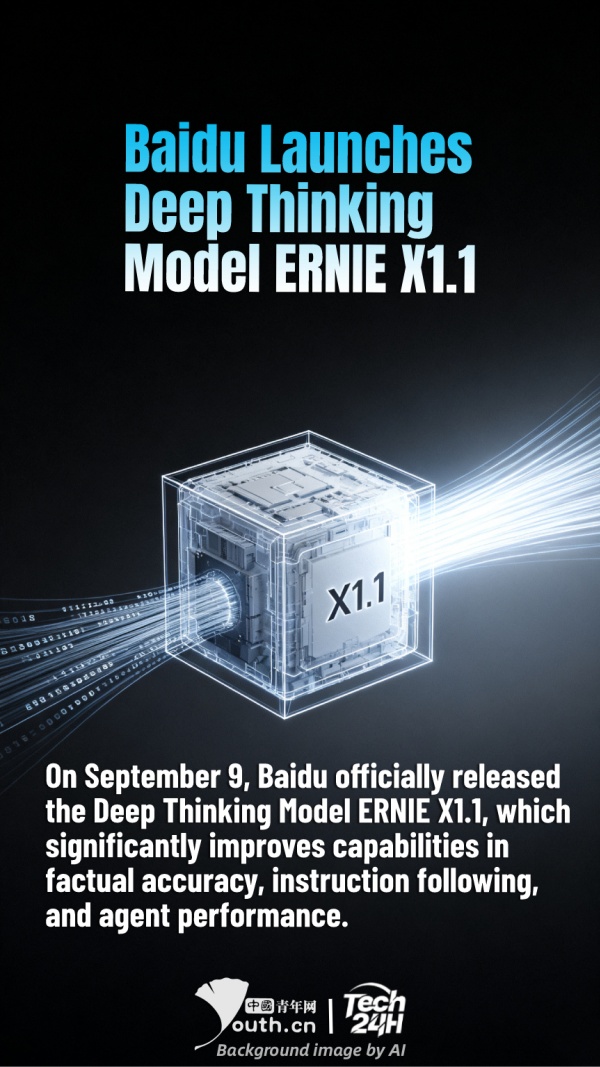 【Tech 24H】On September 9, Baidu officially released the Deep Thinking Model ERNIE X1.1, which significantly improves capabilities in factual accuracy, instruction following, and agent performance. Users can access and experience ERNIE X1.1 through the ERNIE Bot official website and the Wenxiaoyan App. Additionally, the model is now fully available on Baidu Intelligent Cloud’s Qianfan Platform for enterprise customers and developers.