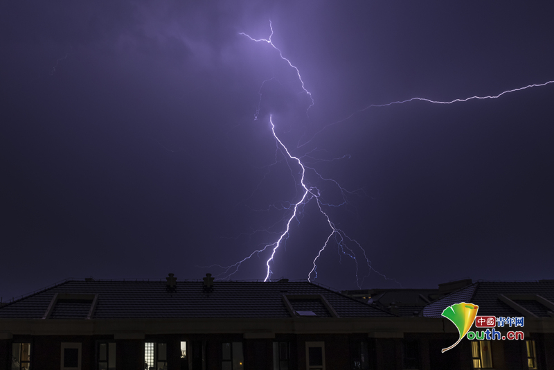 Beijing, September 10 (Youth.cn) - On September 9, 2025, in Changping District, Beijing, during the White Dew, thunder rumbled and lightning flashed, as several bolts of lightning tore through the night sky amid the storm. Photo/CFP