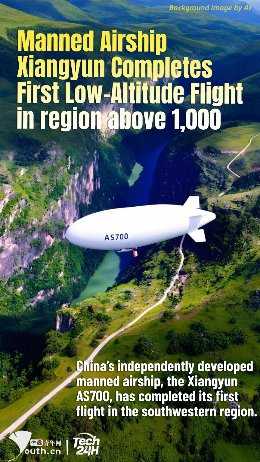 【Tech 24H】China's independently developed manned airship, the Xiangyun AS700, has completed its first flight in the southwestern region. This flight took place at an altitude of 1,200 meters in Guizhou Province, marking the first low-altitude flight above 1,000 meters in a high-altitude area. The environmental adaptability data and plateau flight parameters collected during the mission not only verified the AS700's suitability for low-altitude scenarios in southwestern China but will also drive product improvements and iterations. This progress will enhance the airship's adaptability to diverse application scenarios and lay the foundation for expanding into fields such as emergency rescue and aerial monitoring, as well as developing customized flight support solutions.