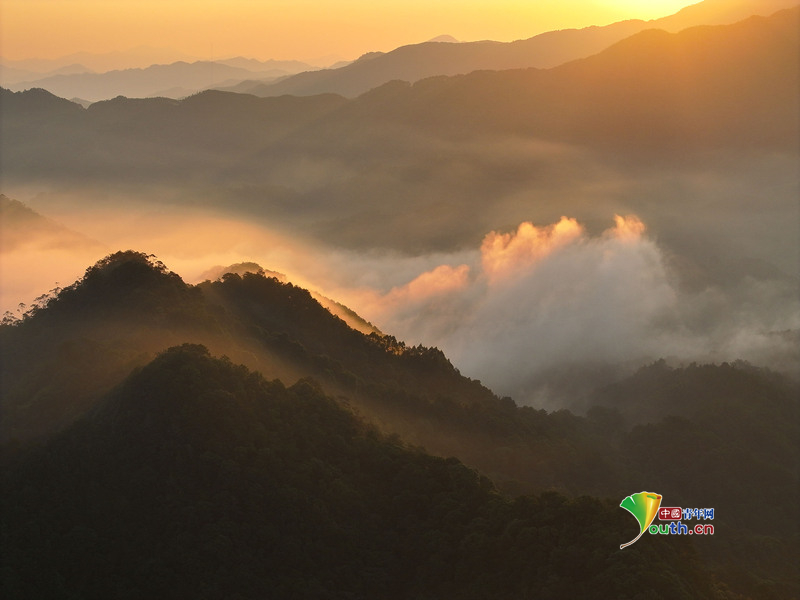 Beijing, October 11 (Youth.cn) - On October 10, 2025, a spectacular sea of clouds at sunrise was witnessed at the Danao Mountain Forest Farm in Hezhou City, Guangxi Zhuang Autonomous Region. The painting-like scene unfolded over Zhaoping County. Photo/CFP