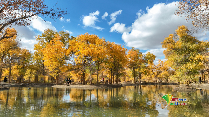 Beijing, October 11 (Youth.cn) - On October 9, 2025, the poplar forests in Jinta Desert Poplar Forest Scenic Area of Jiuquan City, Gansu Province, were clad in golden attire, unfolding a breathtaking panorama of endless golden hues. Photo/CFP
