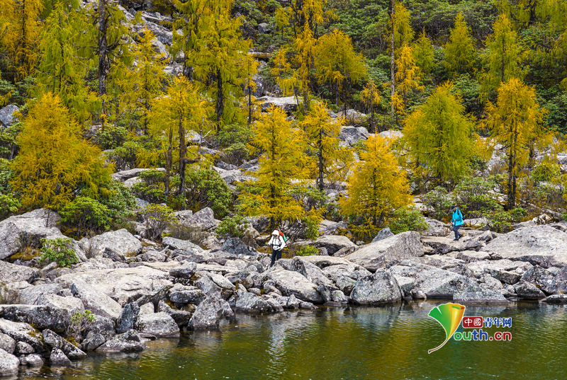Beijing, October 22 (Youth.cn) - On October 15, 2025, the larch trees in the Dangling Scenic Area of Danba County, Garze Tibetan Autonomous Prefecture, Sichuan, turned a vast expanse of gold. The golden trees complement the snow-capped mountains perfectly and attract countless hikers to explore, which creats a beautiful interaction between the colorful forest and humanity. Photo/CFP