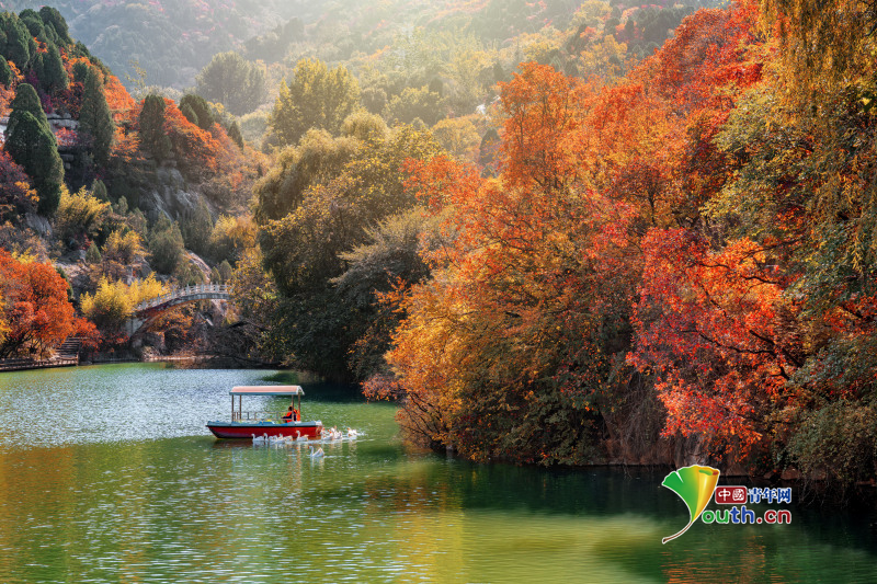 Beijing, October 22 (Youth.cn) - On October 21, 2025, at the Red Leaves Canyon scenic area in Jinan, the mountains and valleys were ablaze with vibrant autumn foliage, creating the most dazzling landscape of the "Spring City" in fall and attracting visitors from all directions.